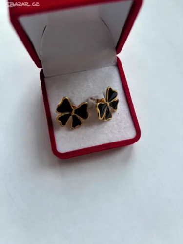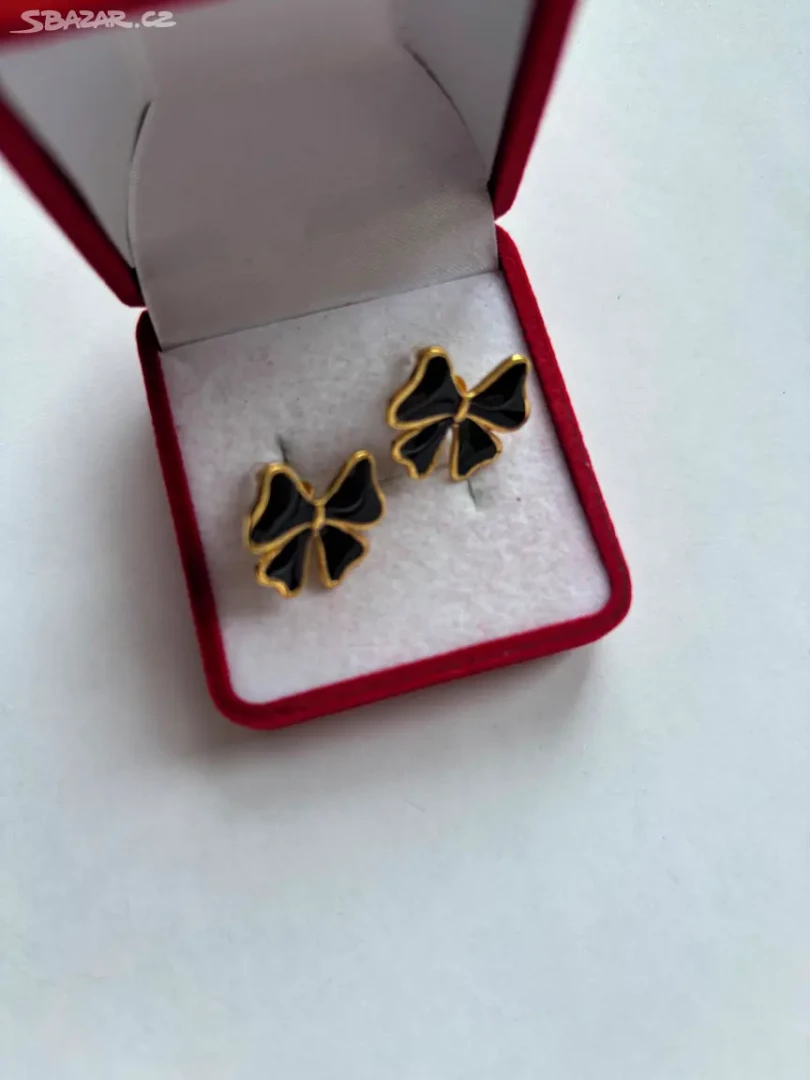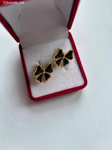 Elegantni jednoduché náušnice zlacené 18krt.zlatem s mašlí v černé barvě