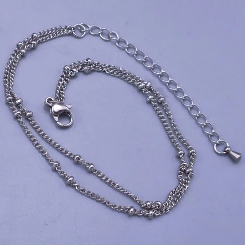 Dámský dvojitý náramek z leštěné chirurgické oceli je zdobený kuličkami.