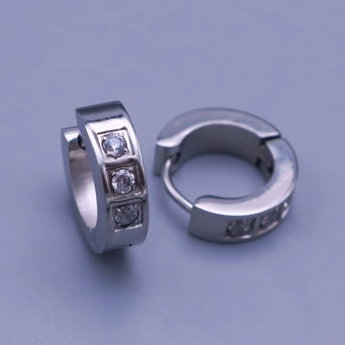 Krásné dámské náušnice z chirurgické oceli - kroužky. Náušnice jsou v přední části zdobené čirýmí kamínky, díky kterým vypadají luxusně a elegantně zároveň. Kroužkové náušnice jsou pohodlné a vhodné pro každodenní nošení. Lze je snadno sladit s jakoukoliv barvou outfitu a hodí se pro ženu každého věkové kategorie.
