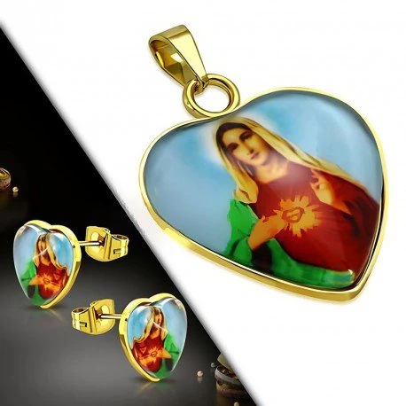 Kolekce ve tvaru srdce ze zlacené chirurgické oceli složená z náušnic a přívěsku Rozměry náušnice 10x10mm,zapínání na puzetku Rozměry přívěsku 20x20mm 5SS1567