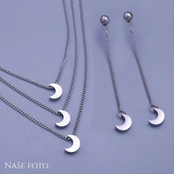 Krásná měsíční souprava náušnic a řetízku z chirurgické oceli