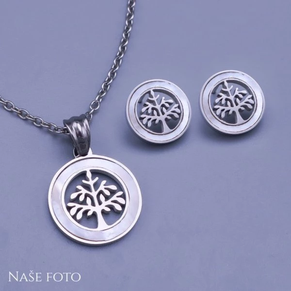 Krásná dámská souprava náušnic a přívěsku z chirurgické oceli - strom života
