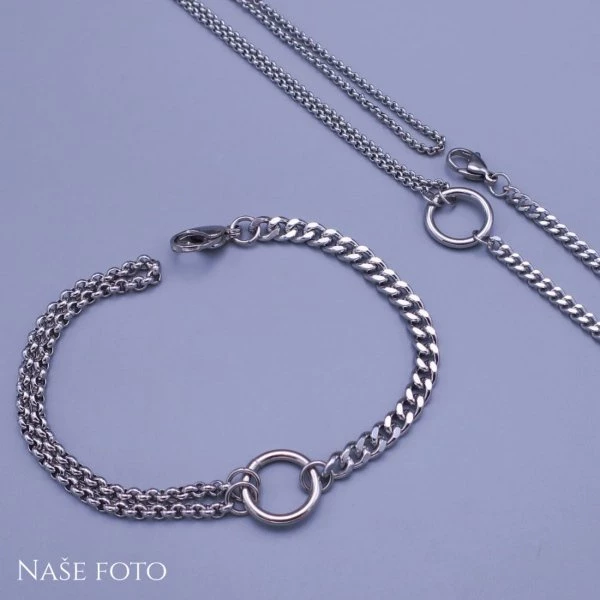 Moderní kombinovaná souprava náramku a řetízku z chirurgické oceli