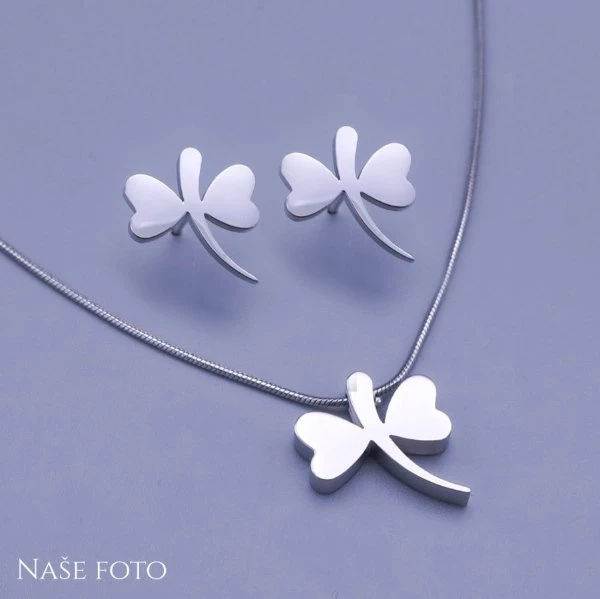 Krásná dámská souprava náušnic a přívěsku z chirurgické oceli - vážky