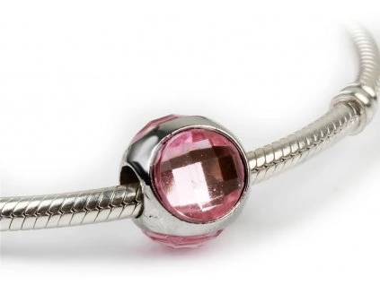 Kovový korálek s velkými růžovými broušenými kamínky.