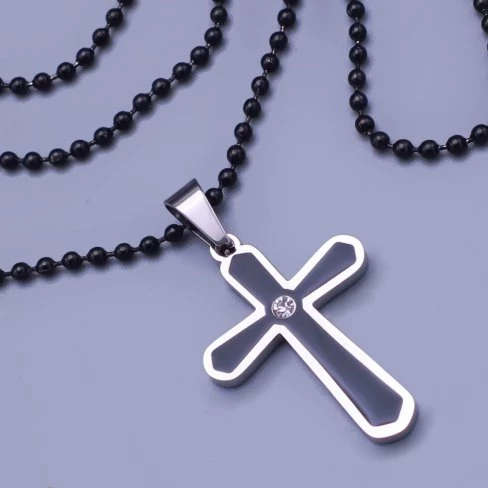 Krásný kříž z chirurgické oceli, je zdobený černou výplní a čirým zirkonem.