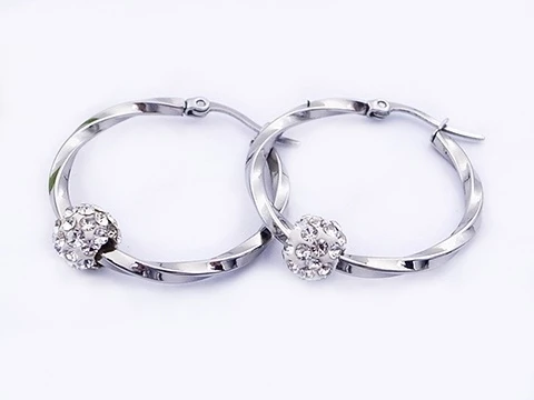 Náušnice z lesklé chirugické oceli s navlečenou kuličku bohatě zdobenou krystal kamínky. Velikost 2,5 cm, průměr kuličky 0,8 cm. Ocelové Antyalergenní Náušnice. Cenově dostupný Šperk . Odolnost proti korozi. Barevná stálost. Vyjímečná tvrdost . Plnohodnotně nahradí drahé kovy.