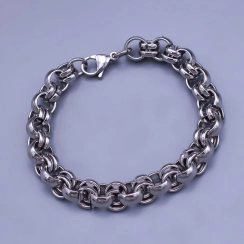 Moderní náramek z leštěné chirurgické oceli se skládá z koleček o velikosti 8x4mm.