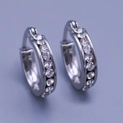 Nádherné dámské náušnice z chirurgické oceli - kroužky. Náušnice jsou po celém svém obvodu zdobené čirými zářivými kamínky. V uších vypadají velice luxusně, elegantně a decentně zároveň. Jsou skvělým doplňkem na plesy, večírky a další speciální události. Díky své menší velikosti se však hodí také pro každodenní nošení.
