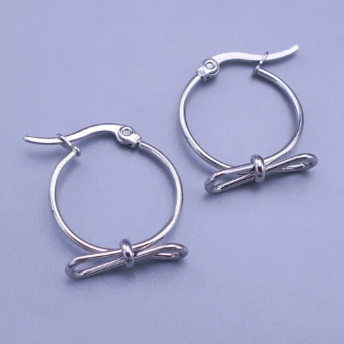 Nádherné dámské náušnice z chirurgické oceli - kroužky. Náušnice jsou ve spodní části zdobené mašličkou. Povrch náušnic je hladký a lesklý. Vypadají velice roztomile, přesto decentně. Jsou střední velikosti a hodí se pro každodenní nošení.