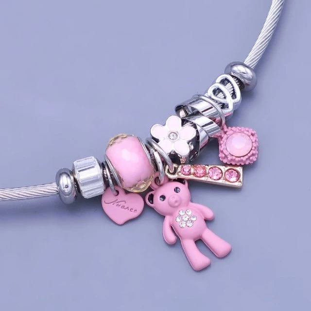 Dámský pevný náhrdelník z leštěné chirurgické oceli lanko je zdoben přívěsky a korálky. Šířka 3mm. Délka 40cm. Náhrdelník krásně sedí na krku díky kulatému tvaru. 11162