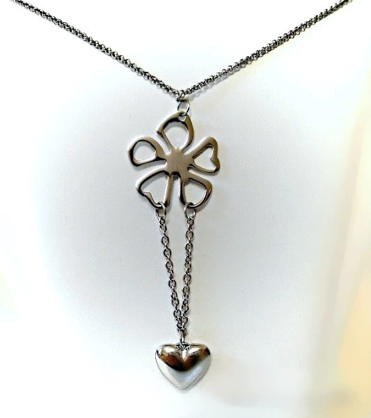 Moc hezký šperk, očkový řetízek s přívěskem kytičky a srdíčka na řetízcích z chirurgické oceli. MATERIÁL Chirurgická ocel 316L BARVA Stříbrná OBVOD NÁHRDELNÍKU 50 cm PRODLUŽOVACÍ ŘETÍZEK Ne ZAPÍNANÍ Karabina DÉLKA PŘÍVĚSKU 7,5 cm ROZMĚR PŘÍVĚSKU kytka 2,7 x 2,5 cm
