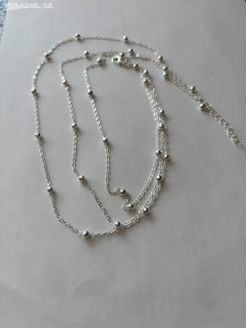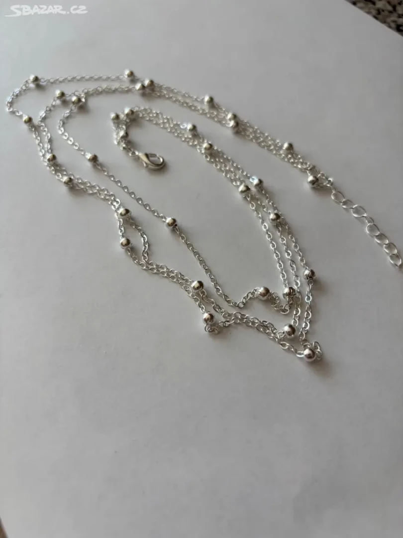 Náhrdelník trojvrstevný ze stříbrnými korálky ve velikosti 3mm
