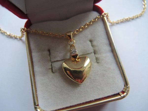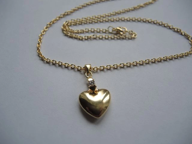 Přívěsek z chirurgické oceli -Srdíčko, je povrchově upraven zlacením 14kar . Velikost: 15mm Součásti přívěsku je řetízek z chirurgické oceli zlacený , který si můžete vybrat z délek 45 cm , 50cm a šířce 3mm . Chirurgická ocel je vhodná pro alergiky na ostatní kovy. PZ022