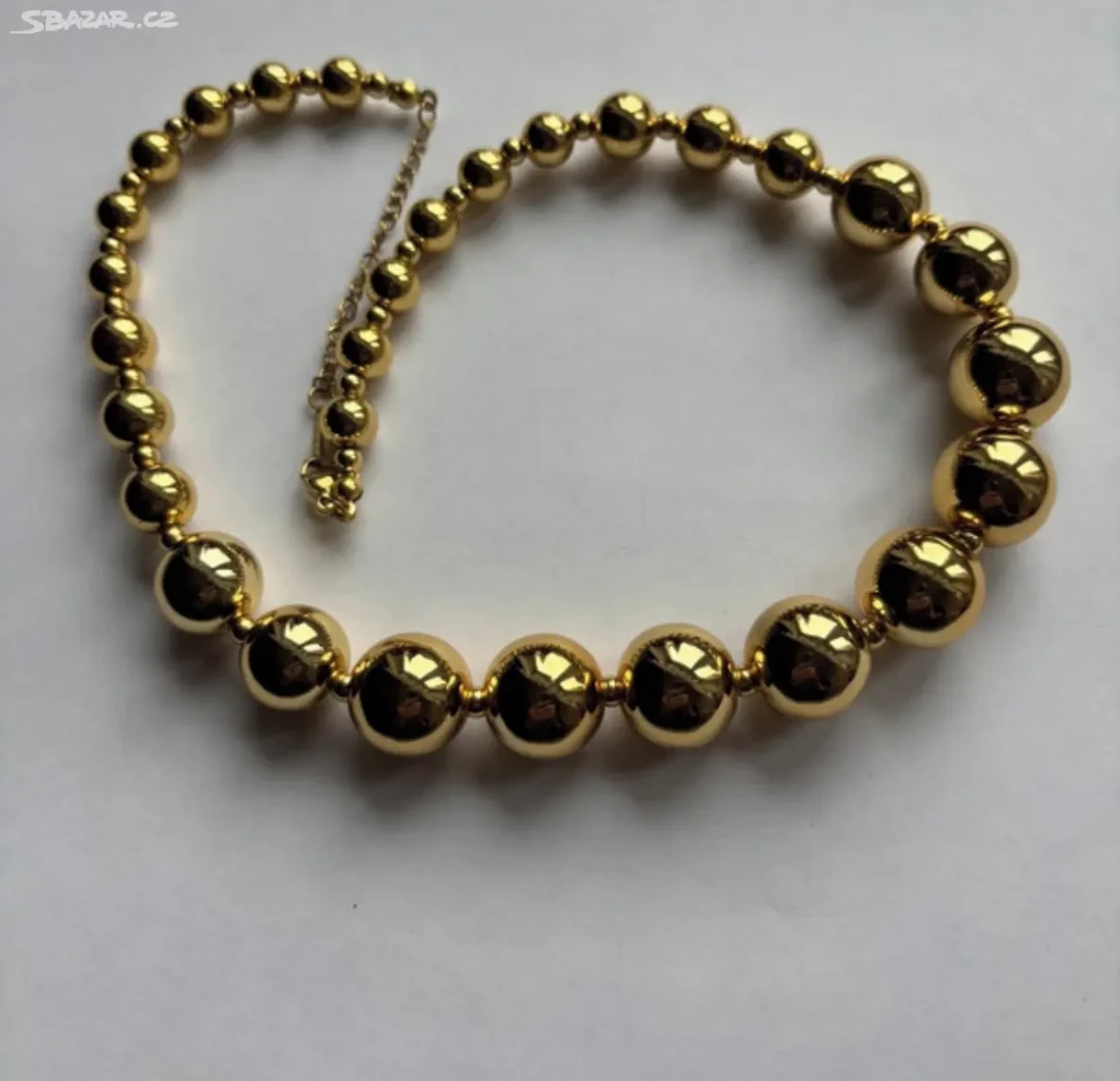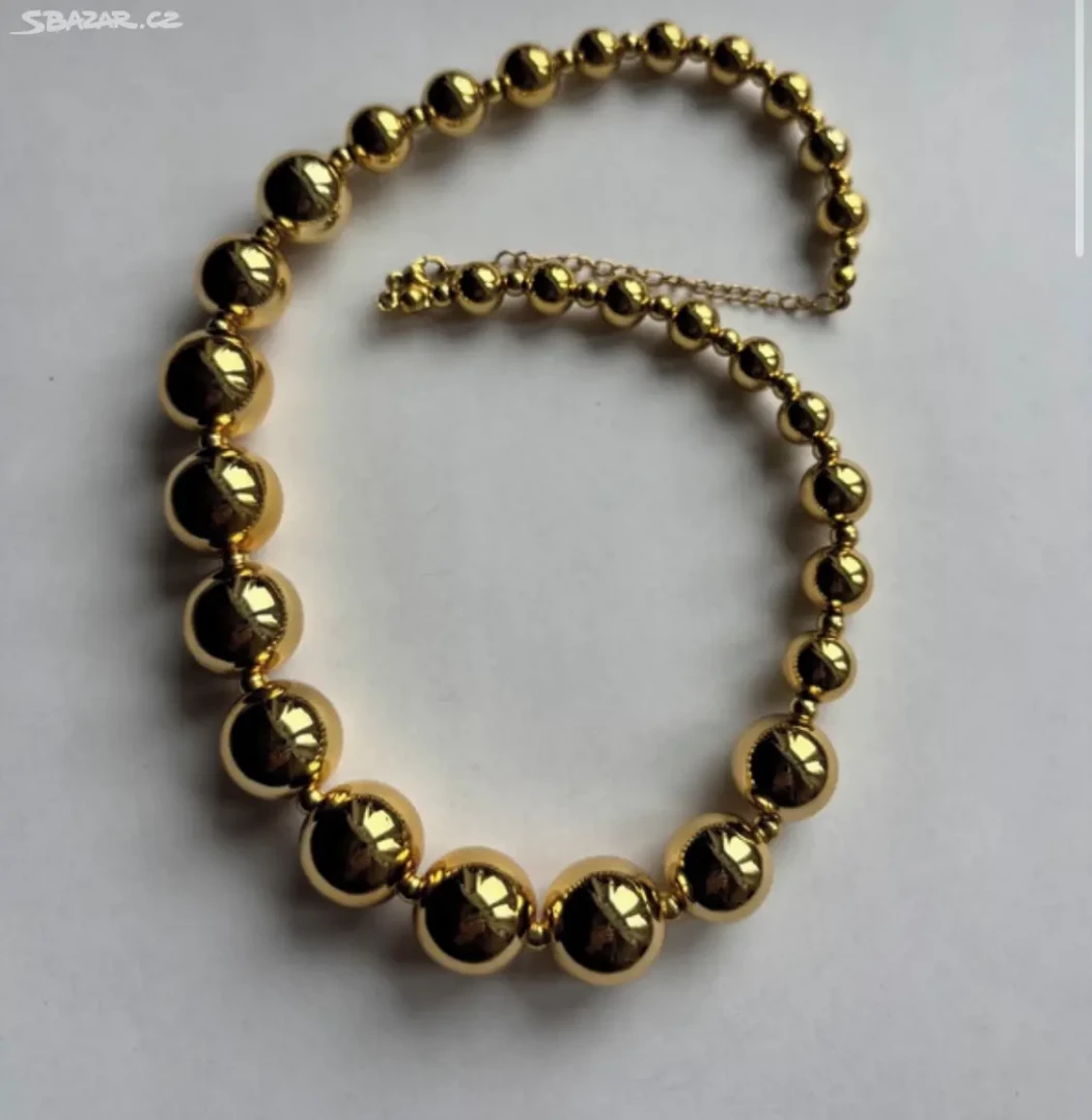 Náhrdelník zlacený zdobený různě velikými kuličkami