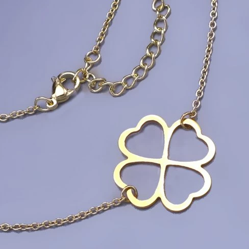 Čtyřlístek z chirurgické oceli je uchycena na ocelovém řetízku.