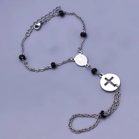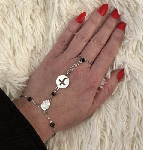 Náramek růženec z chirurgické oceli, je vyroben efektně s návlekem na prst.