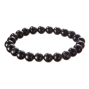 Stylový náramek z pravého onyxu vyniká svou nadčasovou elegancí a silnou energií. Leštěné korálky o průměru 8 mm mají sytě černou barvu, která dodává šperkům mystický vzhled. Onyx je kámen, který dodává sílu a pomáhá ve stresových situacích. Posiluje energii a umožňuje nadhled nad životními situacemi. Elastické provedení zajišťuje snadné nošení a pohodlné přizpůsobení zápěstí.