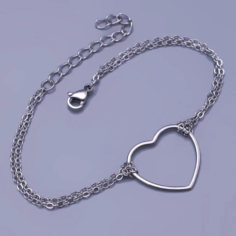 Náramek z leštěné chirurgické oceli je doplněn o obrysové srdíčko.
