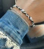 Materiál: spletené šňůrky v černé a bílé barvě, doplněné řetízkem a korálky z kvalitní nerezové oceli.