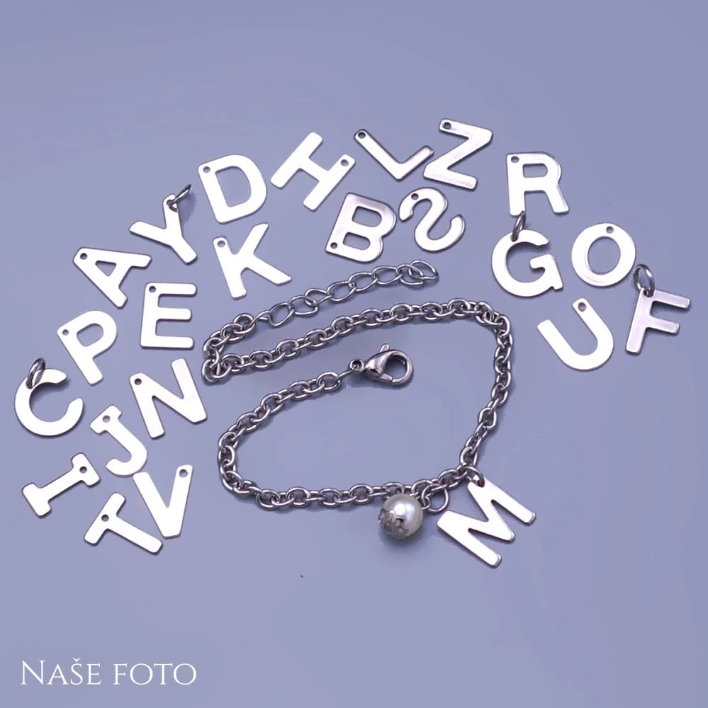 Náramek z leštěné chirurgické oceli s perličkou 6mm a písmenkem, které si vyberete.