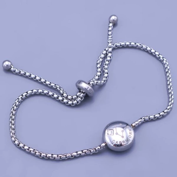 Náramek z leštěné chirurgické oceli je zdoben ocelovým kolečkem 11mm zdobeným zirkonem a gravírovanou konstelací ve znamení KOZOROH Šířka náramku 2mm. Délka je nastavitelná utažením a to korálkem, který je opatřen z vnitřní strany průhledným pevným silikonem. Velikost UNI. 2112