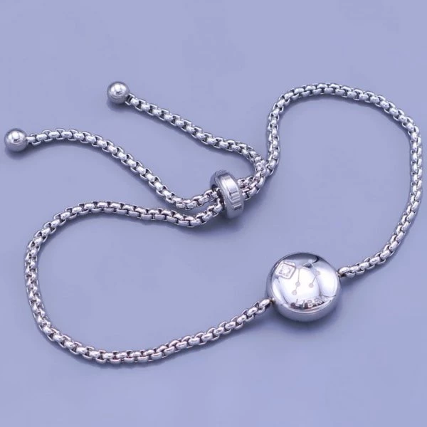 Náramek z leštěné chirurgické oceli je zdoben ocelovým kolečkem 11mm zdobeným zirkonem a gravírovanou konstelací ve znamení VÁHY Šířka náramku 2mm. Délka je nastavitelná utažením a to korálkem, který je opatřen z vnitřní strany průhledným pevným silikonem. Velikost UNI. 2113