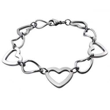 Náramek tvořený srdcemi Materiál 316l chirurgická nerezová ocel Velikost 17 mm x 13 mm Řetízek Délka řetízku, max. : 20 cm, tloušťka řetízku : 2 mm