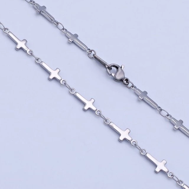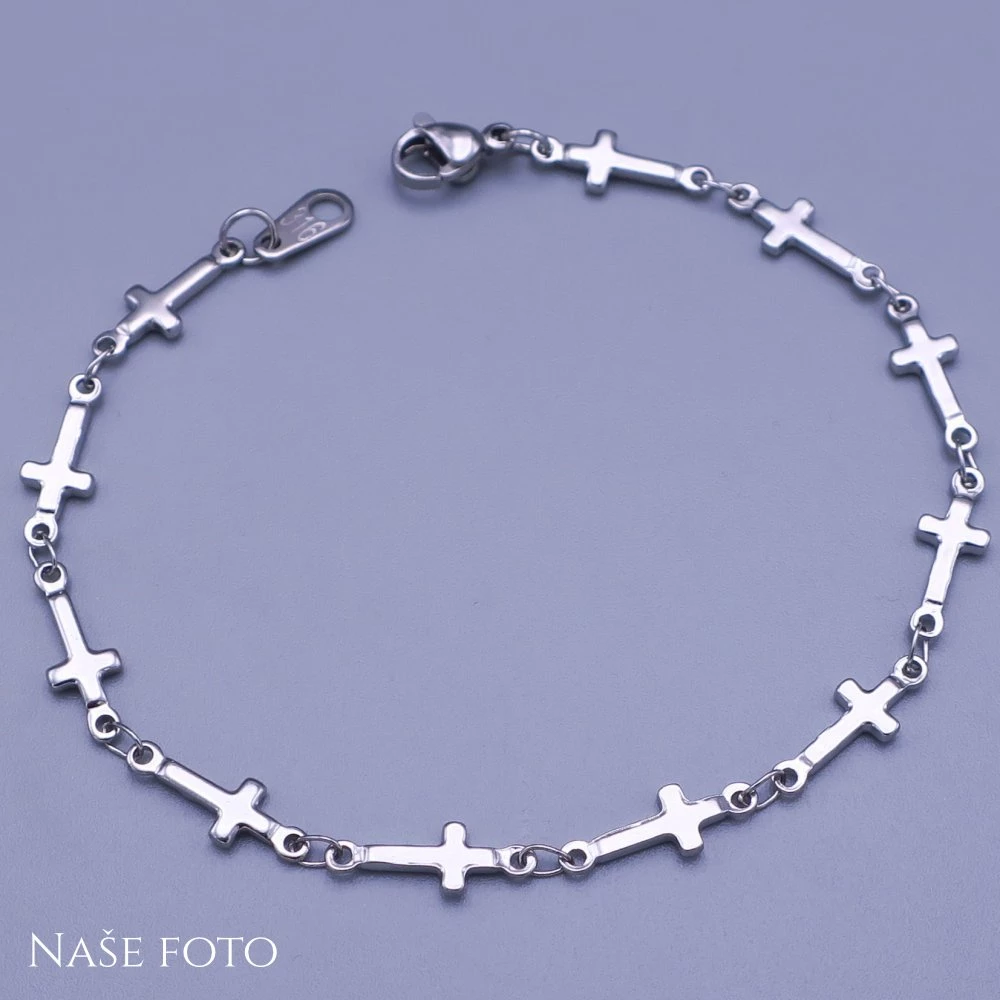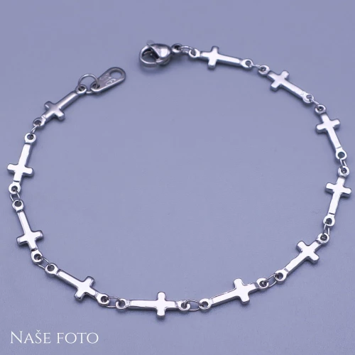 Náramek z leštěné chirurgické oceli je složený z křížků o velikosti 8x4mm. Šířka 4mm Délka na výběr od 16-17-18-19-20-21-22-23-24cm K náramku nabízíme také řetízek. 1198