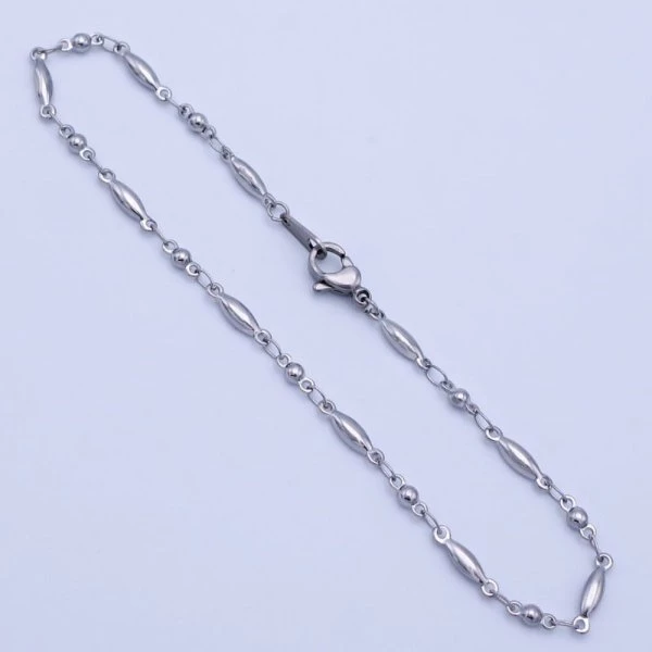 Náramek z leštěné chirurgické oceli je složený z válečků 2x7mm a kuliček 2mm. Šířka náramku 2mm Délka na výběr od 16-17-18-19-20-21-22cm K náramku nabízíme také řetízek. 1196