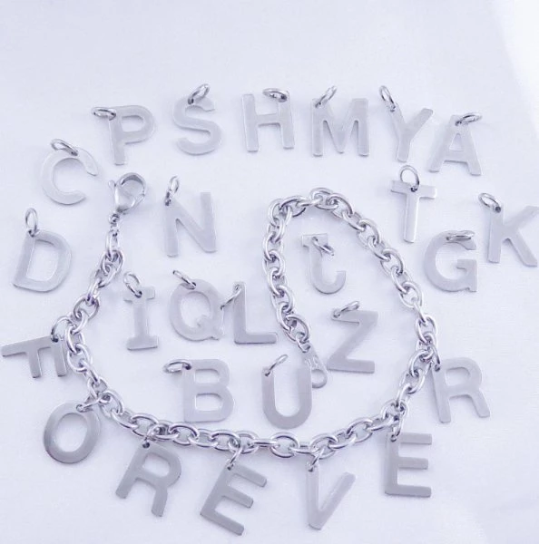 Poskládáme Vám náramek z nabízených písmen . Vyberte si jméno nebo název dle Vašeho přání a do košíku vložte potřebný počet písmen k jeho poskládání. Do poznámky u objednávky nám napište jaké slovo by jste chtěli na náramek vytvořit . Cena písmenka + 20Kč za kus Velikost písmenek cca 10mm Náramek ankr z leštěné chirurgické oceli v šířce 4mm s nastavitelnou délkou do 21cm Chirurgická ocel je vhodná pro alergiky na běžné kovy . N0011