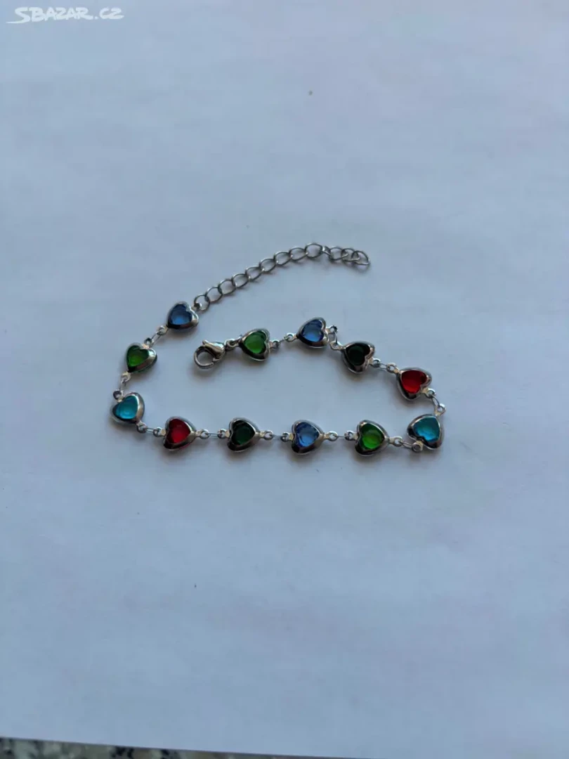 Elegantni náramek zdobený srdíčky v různých barvách