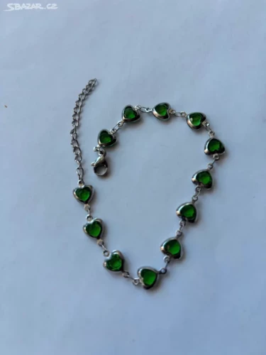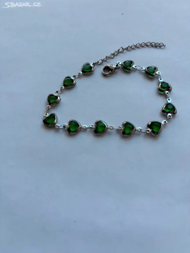 Elegantni náramek zdobený srdíčky v tmavě zelené barvě