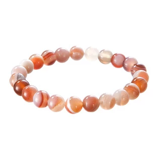Elegantní náramek je vyroben z pravého pruhovaného achátu, který okouzluje svými jemnými odstíny hnědé a bílé. Korálky o velikosti 8 mm vytvářejí harmonický kontrast přírodních barev a jedinečných pruhovaných vzorů, díky nimž je každý náramek originálním kouskem. Je považován za mocného ochránce a stabilizátora energie, který pomáhá najít vnitřní rovnováhu a klid. Jeho jemná, ale vytrvalá síla podporuje emocionální vyrovnanost a pomáhá překonávat životní výzvy s grácií a moudrostí. Elastické provedení zajistí pohodlné nošení a snadné přizpůsobení každému zápěstí.