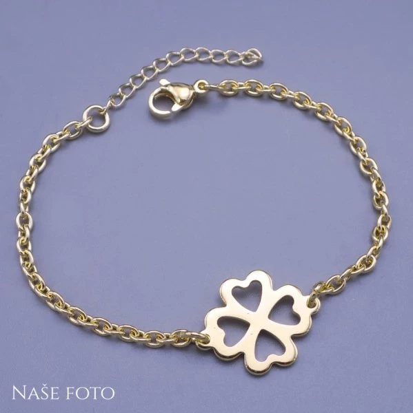 Moderní dámský náramek s čtyřlístkem z pozlacené chirurgické oceli