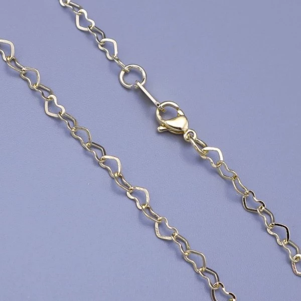 Náramek z chirurgické oceli složený ze srdíček o velikosti 5x3mm je povrchově upraven zlacením 14kar. bez niklu. Zlaceno v ČR v odstínu českého zlata. Šířka 3mm Délka na výběr od 15-16-17-18-19-20-21cm K náramku nabízíme také řetízek a náramek na kotník. NZ04