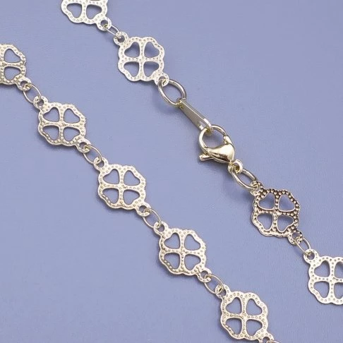 Náramek z chirurgické oceli čtyřlístky, je povrchově upraven zlacením 14kar. Jeho povrch je opatřen lakem, který chrání a prodlužuje jeho krásný vzhled. Zlaceno v ČR bez niklu. Šířka náramku 7mm Délka na výběr od 17-18-19-20-21cm Chirurgická ocel je vhodná pro alergiky na běžné kovy. NZ20