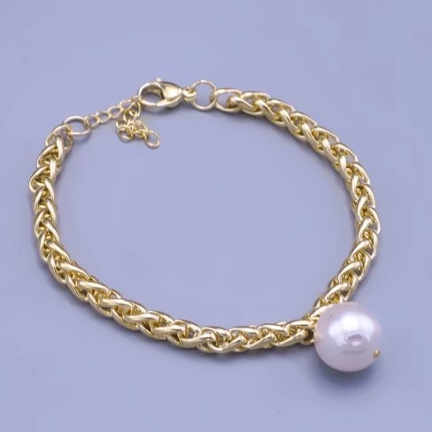 Náramek je zdoben perlou Swarovski o velikosti 12mm v bílé perleťové barvě.