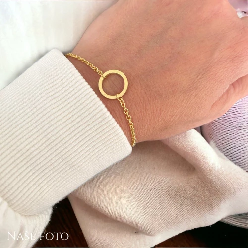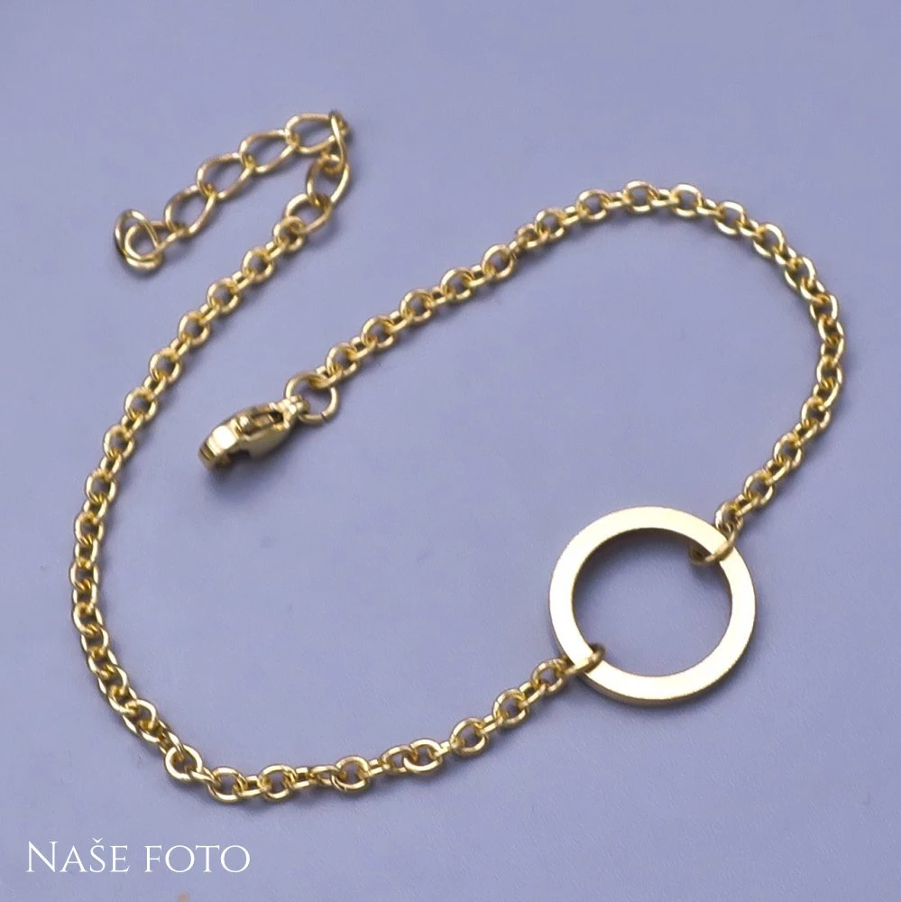 Pozlacený náramek z chirurgické oceli je doplněn o kolečko, který sybmlolizuje karmu.