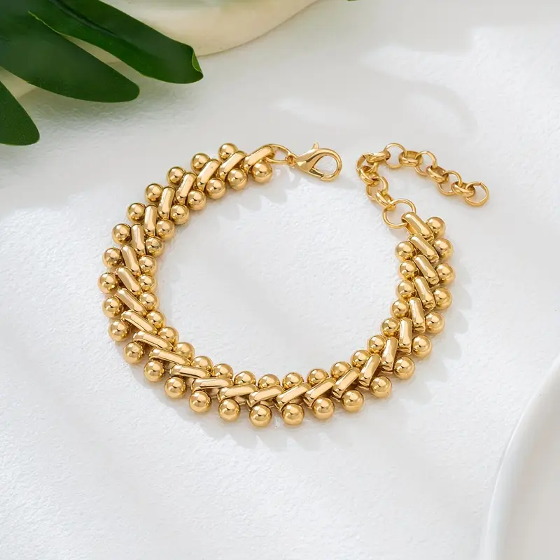 Zlacený náramek s propojenými kuličkami z chirurgické oceli zlacení 14krt.zlatem