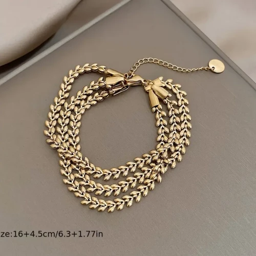 Náramek z nerezové oceli s pšeničným designem a zlatým odstínem