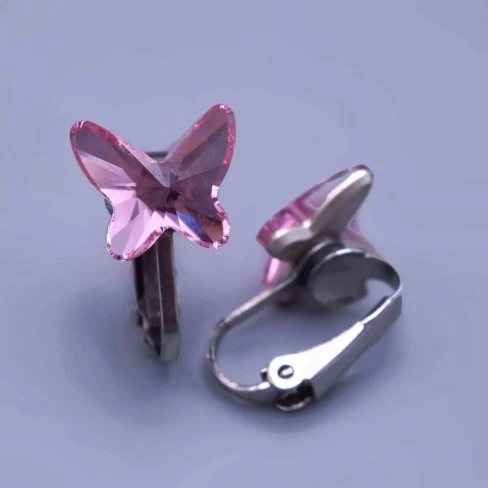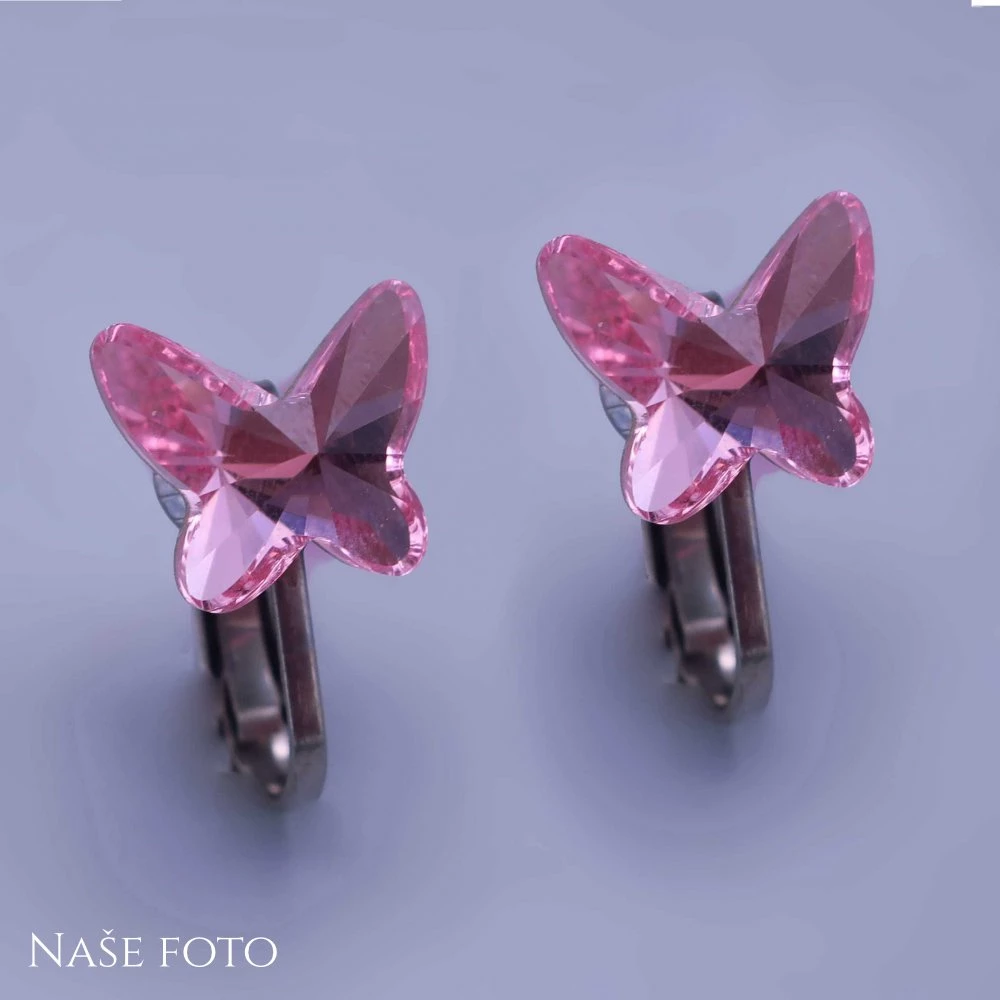 Dámské náušnice z chirurgické oceli zdobené motýlkem Swarovski světle růžové barvy. Zajímavostí těchto náušnice je jejich pohodlné klipsové zapínání, díky kterému jsou ideální pro ženy bez ušních dírek. Zapínání náušnic je na chirurgické oceli a jsou tedy mimo jiné vhodné pro alergiky na běžné kovy. Náušnice jsou lehké, decentní a příjemné na Vaše každodenní nošení.