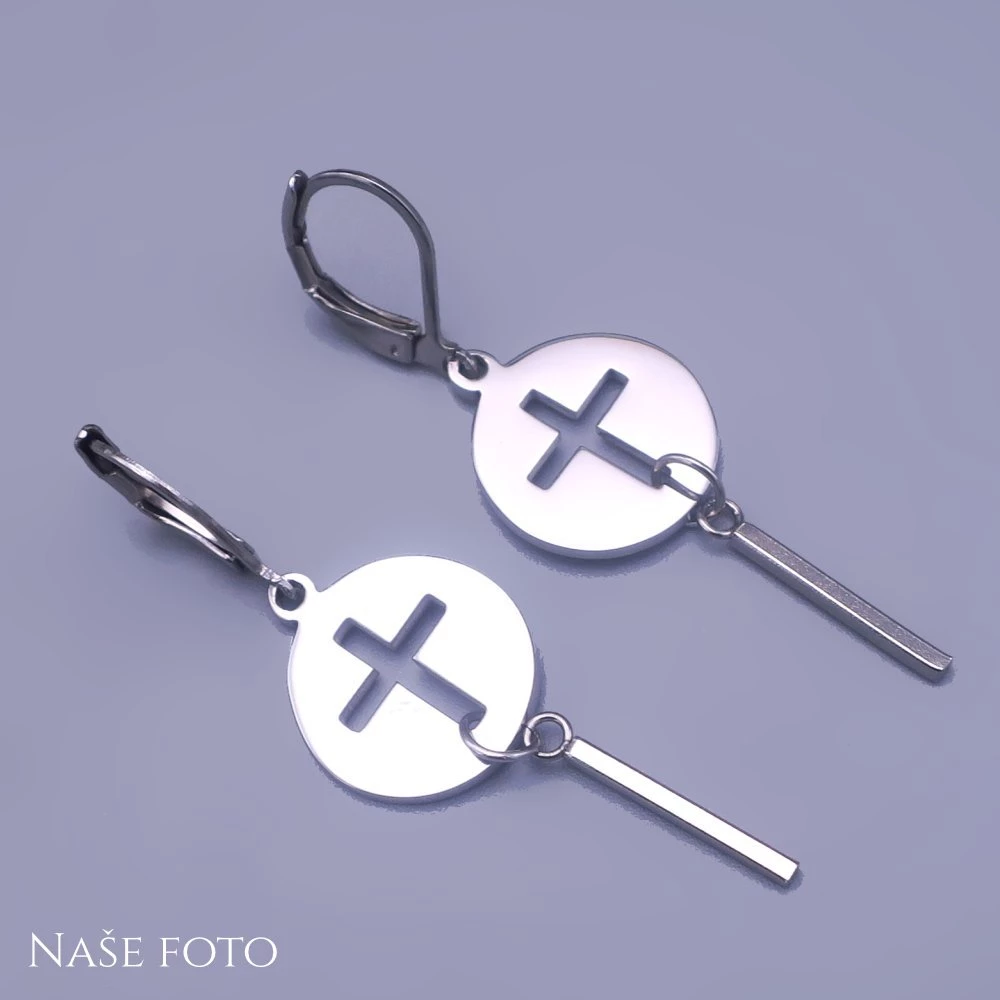Náušnice z leštěné chirurgické oceli s motivem křížky.
