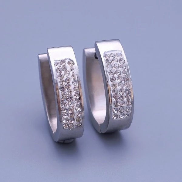 Náušnice z leštěné chirurgické oceli oválky jsou z přední strany zdobené čirými zirkony. Délka náušnic 20mm Šířka 6mm Chirurgická ocel je vhodná pro alergiky na běžné kovy. 1329