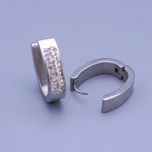 Náušnice oválky 20mm z chirurgické oceli se zirkony