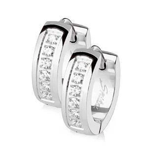 Ocelové náušnice kroužky Náušnice jsou vyrobené z chirurgické oceli 316L materiál chirurgická ocel povrchová úprava lesklá druh kamene zirkon průměr náušnic 13mm šíře náušnic 4mm