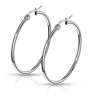 Ocelové náušnice kruhy lesklé Náušnice jsou vyrobeny z chirurgické oceli s jakostním označením 316L Rozměry Velikost 35mm Šířka 2mm Povrchová úprava Lesklá