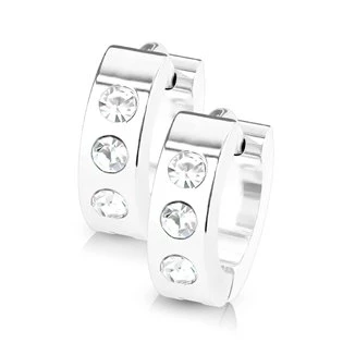Ocelové náušnice kroužky se zirkony Náušnice jsou vyrobené z chirurgické oceli 316L Parametry materiál chirurgická ocel povrchová úprava lesklá průměr náušnic 13 mm šíře náušnic 4 mm