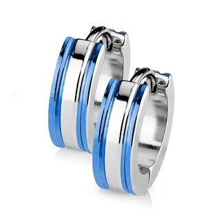Ocelové náušnice kroužky Náušnice z chirurgické oceli 316L zdobené modrou povrchovou úpravou Parametry materiál chirurgická ocel povrchová úprava lesklá, modrá průměr náušnic 13 mm šíře náušnic 4 mm