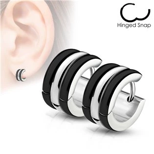 Ocelové náušnice kroužky Náušnice jsou vyrobené z chirurgické oceli 316L Parametry materiál chirurgická ocel povrchová úprava černá, lesklá průměr náušnic 13 mm šíře náušnic 7 mm
